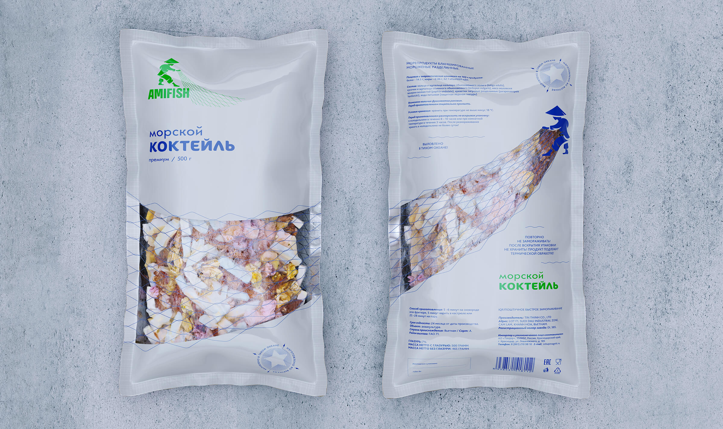 Руководство Tamtamfoods и дочерней компании-дистрибьютера Amifish приняли решение у выпуске продукции под своей торговой маркой. В качестве позиционирования бренда было решено подчеркнуть страну производства морепродуктов, Вьетнам.