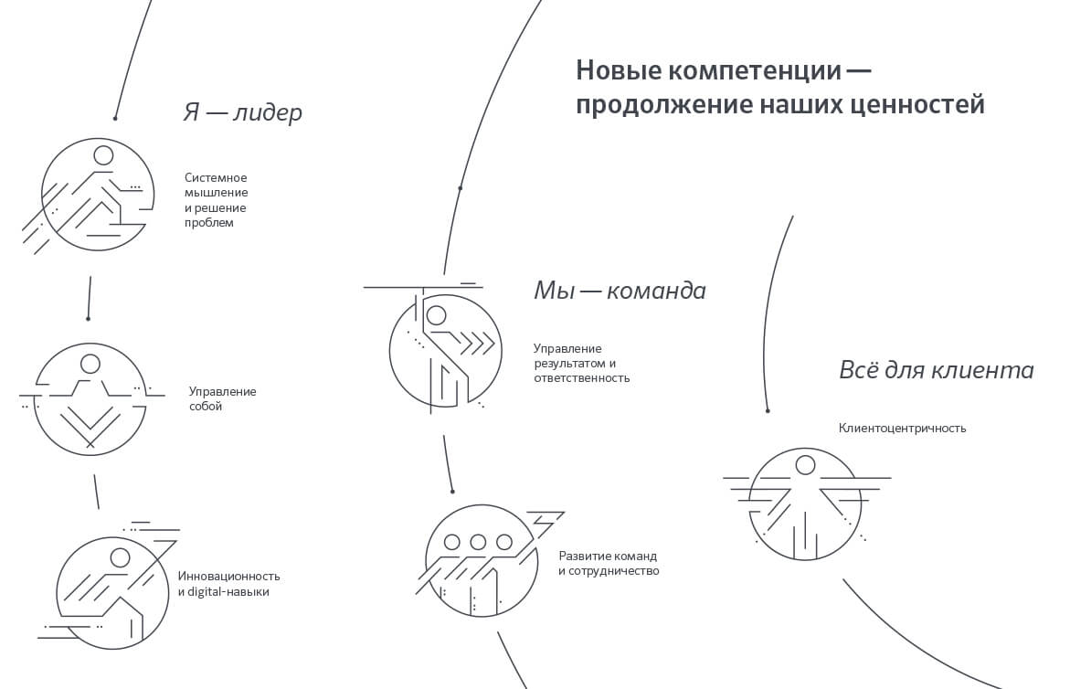 Системное мышление и решение проблем. Управление результатом и ответственность. Управление собой. Инновационность и digital-навыки. Развитие команд и сотрудничество. Клиентоцентричность. Эти шесть современных и востребованных компетенций помогают сотрудникам Сбербанка достигать выдающихся результатов при реализации стратегии 2020. Сделать эти ключевые компетенции простыми и понятными, динамичными и вдохновляющими — такова была задача, поставленная банком перед агентством Сoachmedia.