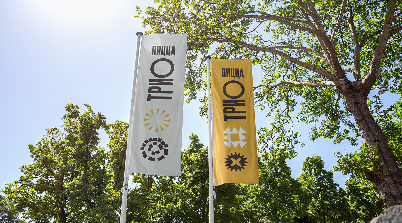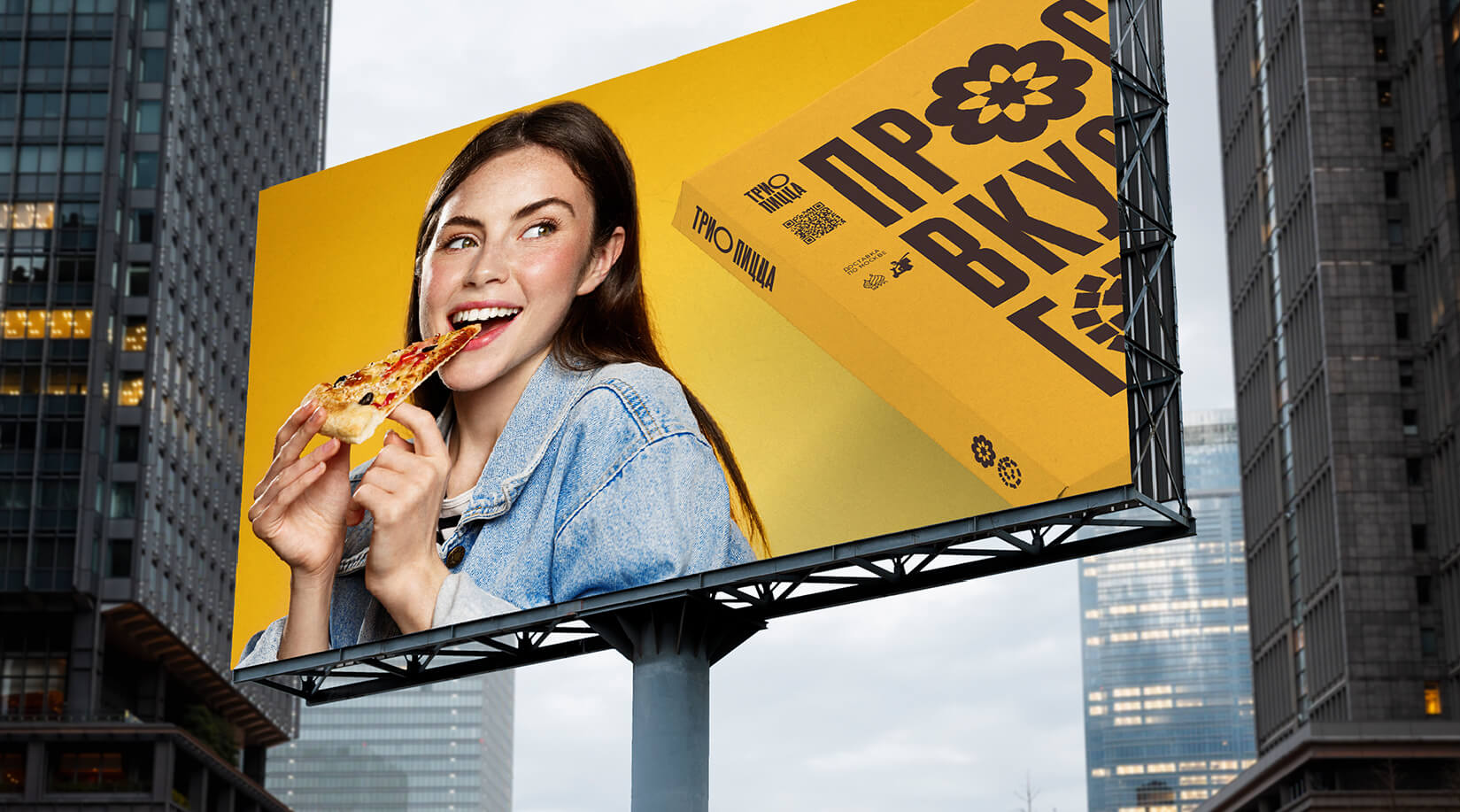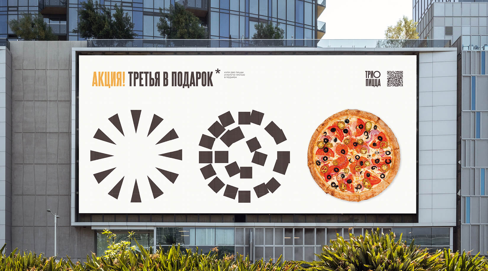 При обсуждении проекта, с руководством бренда пришли к пониманию, что двигаться в традиционных направлениях: «Романтика Италии» или «Элитная пицца из лучших ресторанов» мы не хотим и было предложено сделать акцент на простоте продукта. Тут нам пришла гениальная «Идея Трех О», Трио – Просто, Вкусно, Сытно, что созвучно Трио, названию нашего бренда.